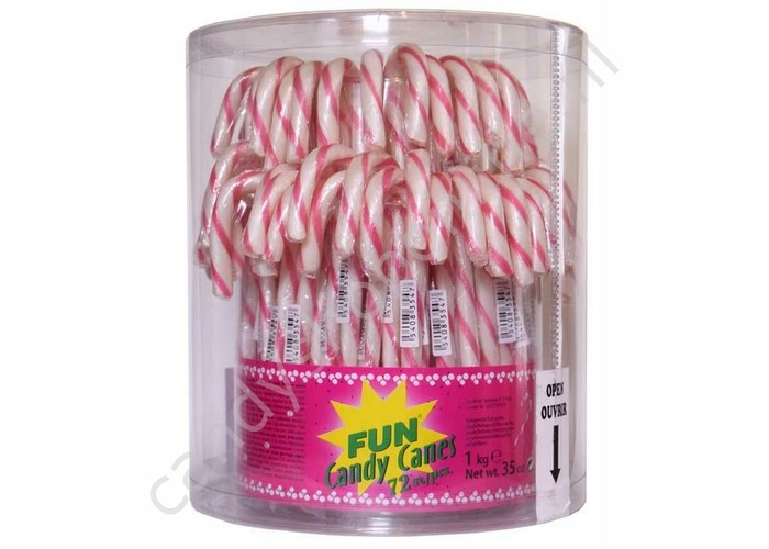 Candy cane zuurstok in roze aardbeismaak (per stuk verpakt). Per 5 stuks of een silo van 72 stuks.