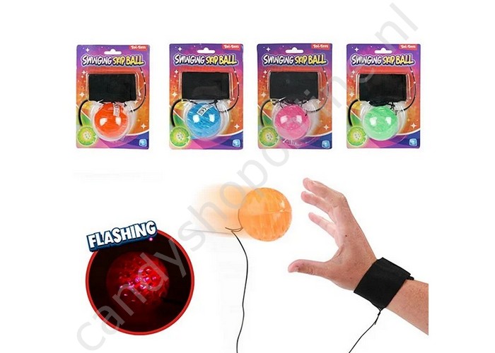 Bal 5cm met Licht Bungee Elastiek + enkelband assorti 10,5x19,5cm met snoepzak