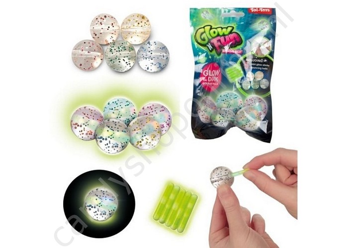 Glow n Fun Stuiterballen met Glow Sticks 5stuks 18x3,5x11cm. met snoepzak