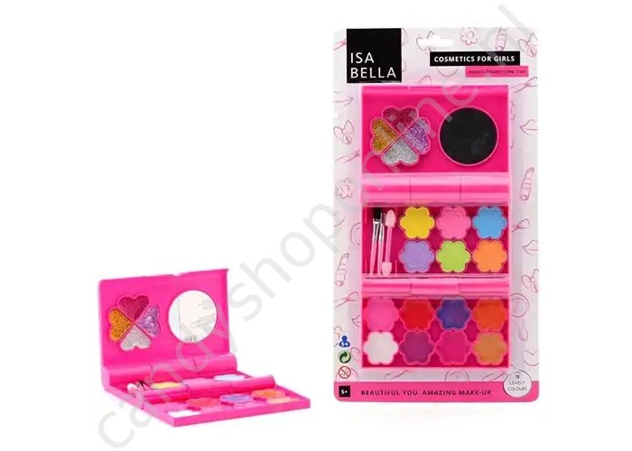Isabella Make-Up Doos op kaart 17,5x32,5cm. met snoepzak