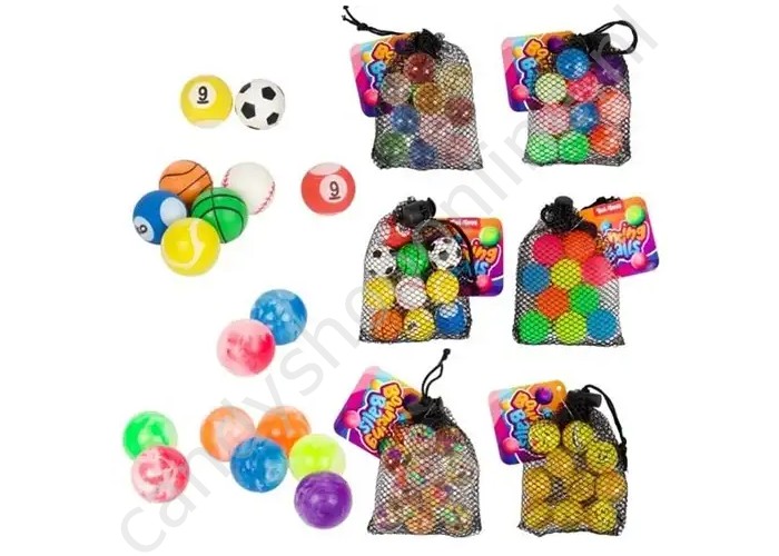 Stuiterballen klein 25mm. 10stuks in net met snoepzak