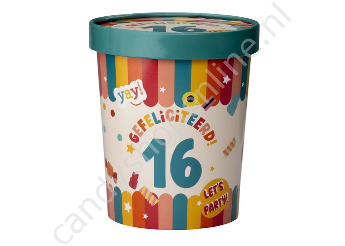 Candy Bucket "16 JAAR" met 500gr. snoepmix