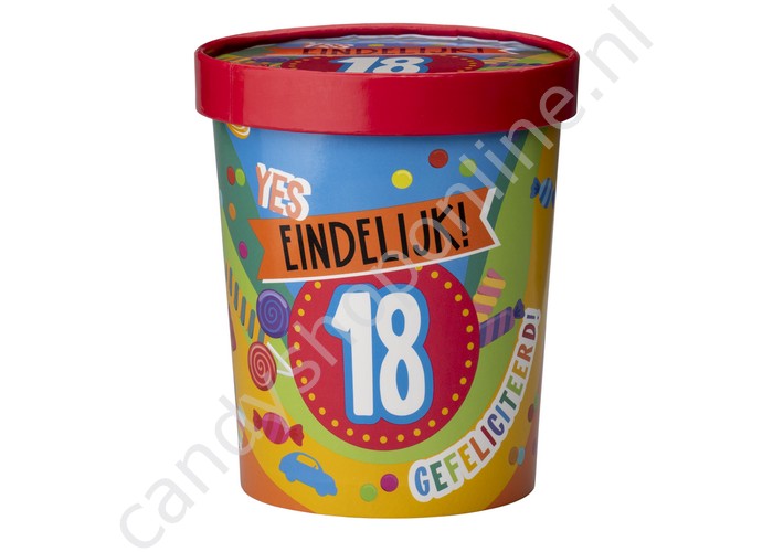 Candy Bucket "18 JAAR" met 500gr. snoepmix