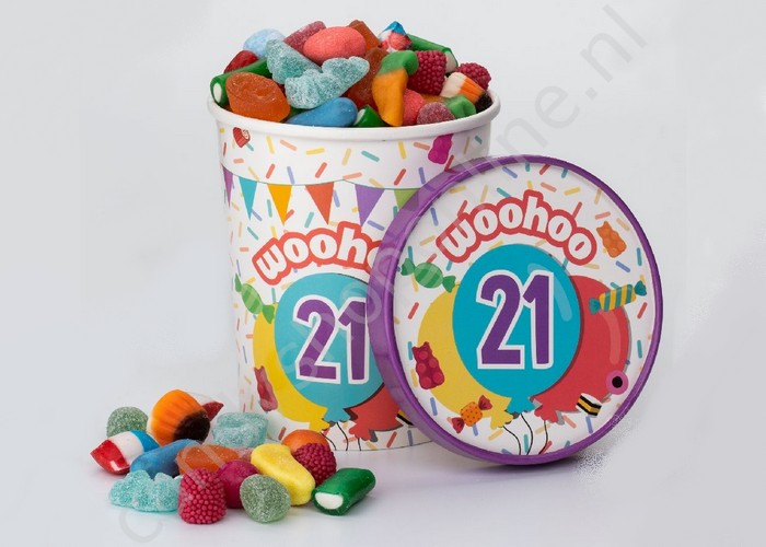 Candy Bucket "21 JAAR" met 500gr. snoepmix