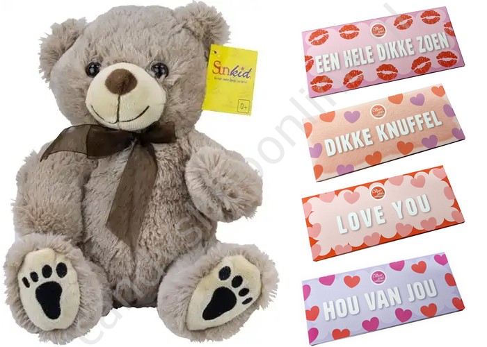 Sunkid Pluche Beer Grijs 25 cm. met Voor Jou Chocolade Tablet